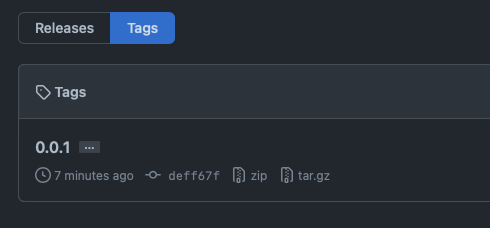 아래와 같이 Github repository에 Release 가 되었고 Tagging이 되었다.